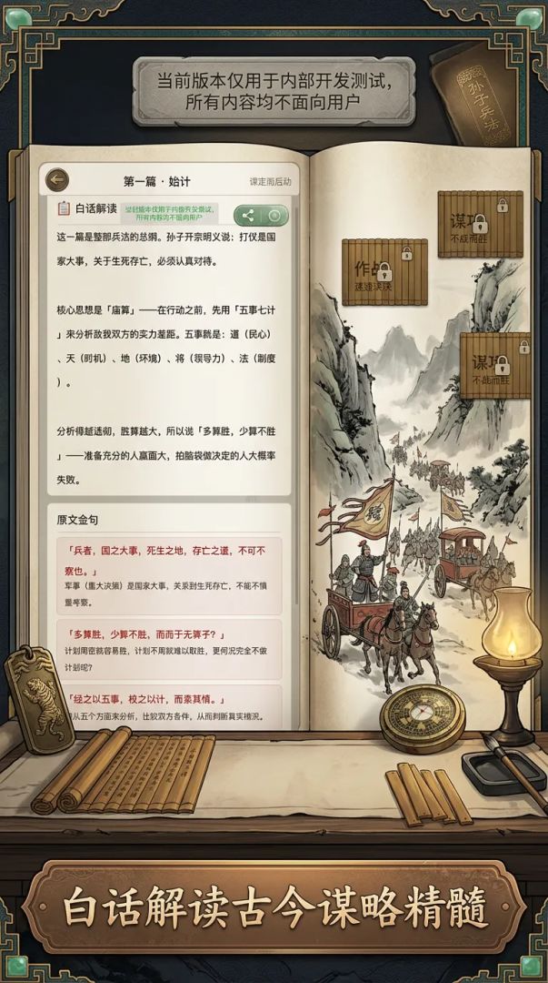 将孙子兵法游戏化的有教育意义的作品案例。先科普原文再让玩家做抉择。Tap制造可以通过知识问答,产出游戏化教育品类的作品。并支持插入分镜漫画的功能,后续同类作品可作以参考。