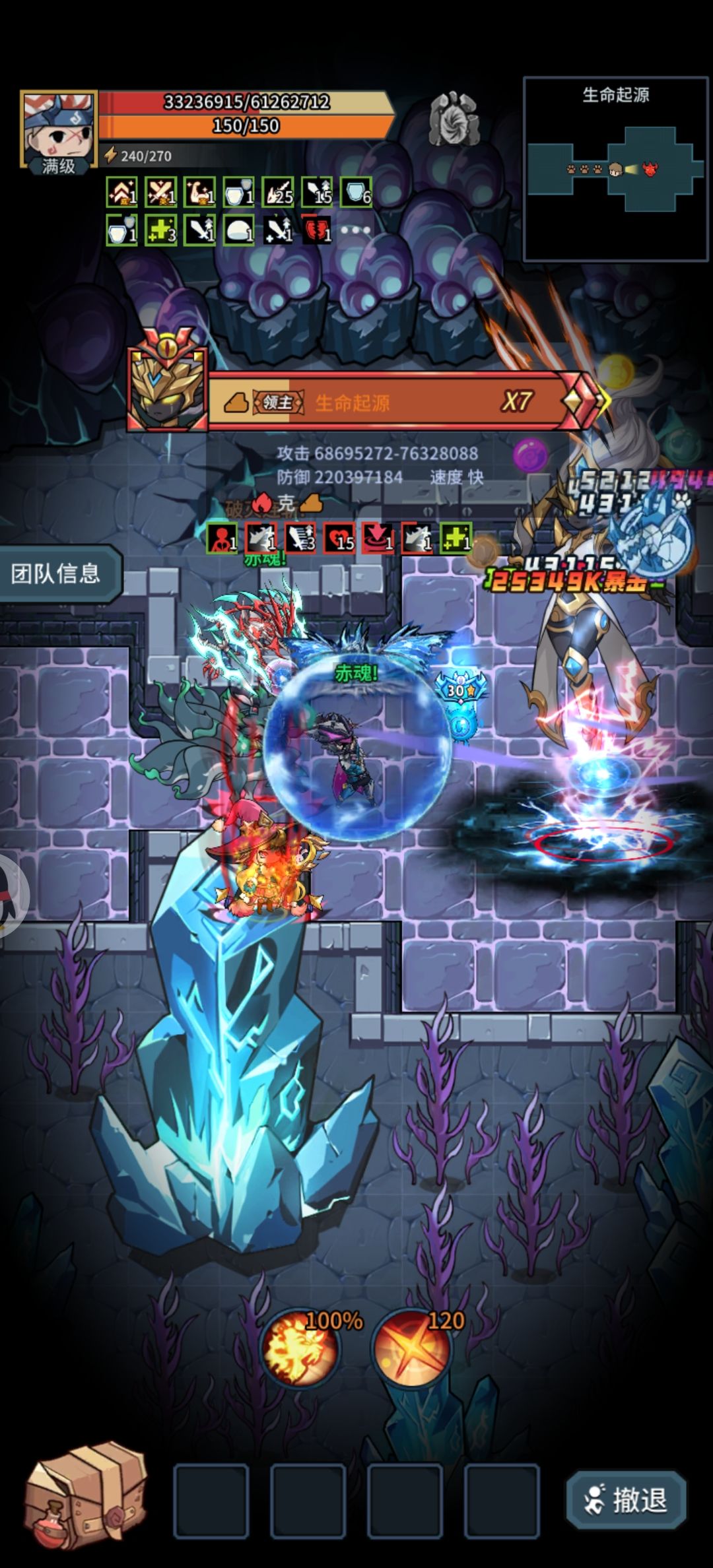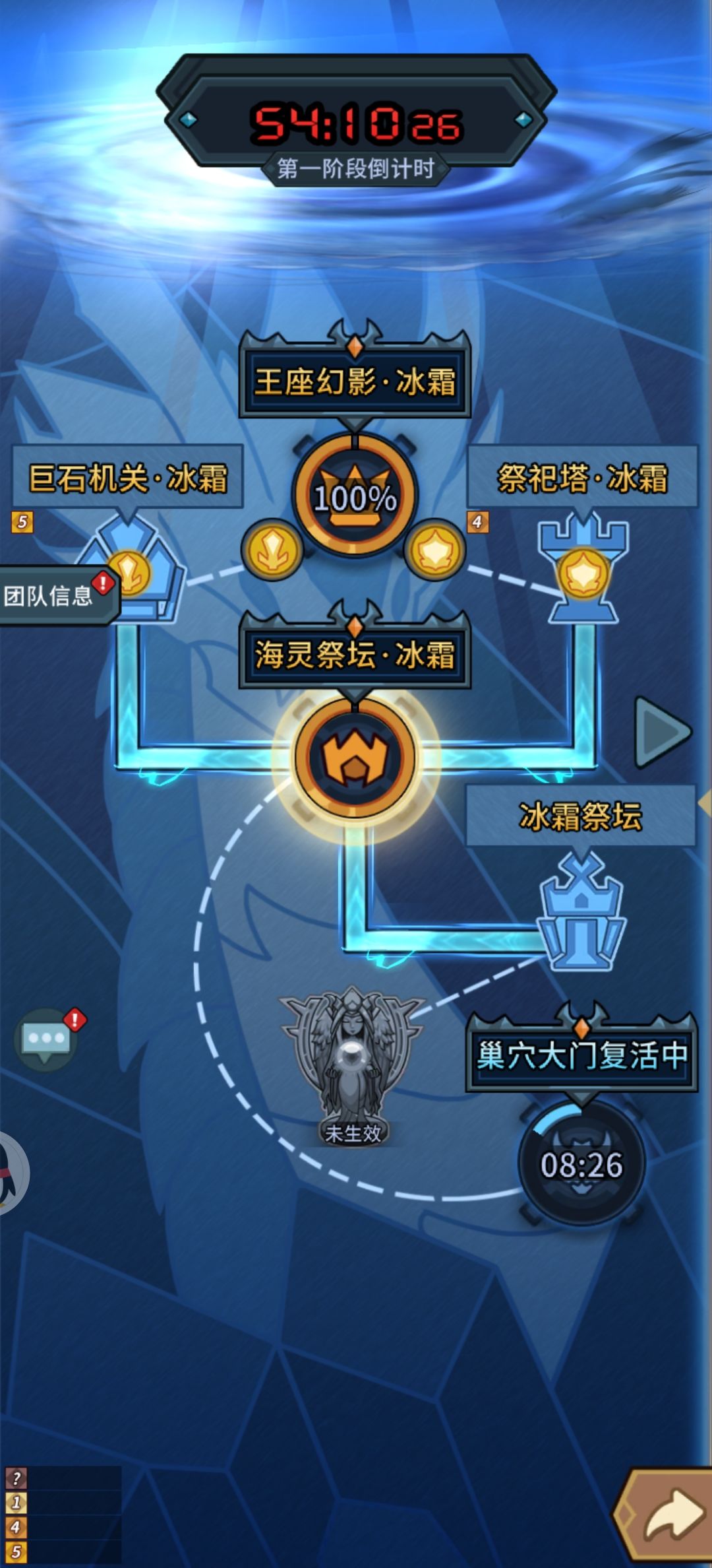 7王座,这个图就需要大C来打了,我只知道个大概,水火属性交替,适合带水属性赋予,基础面板超高,但只要三个起源没活就能慢慢磨,生命值应该是共享的。