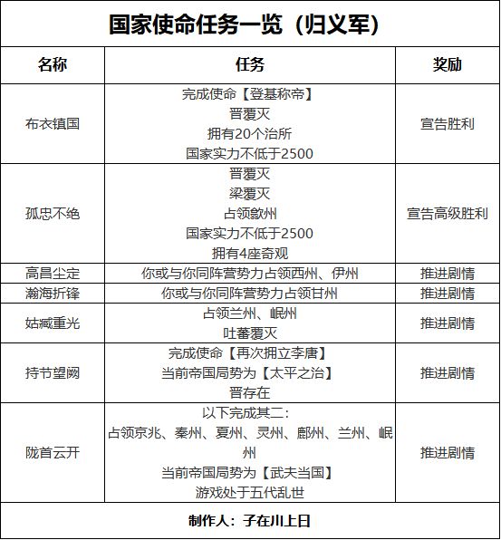 我们依旧分阶段按照剧情完成终局国家使命任务,我将归义军的故事分为五个阶段,