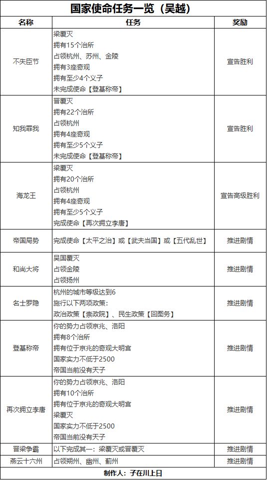 写在前面:各位王上好,我是子在川上曰。今天带来的是残唐五代剧本吴越的开荒指南,希望能够帮助各位王上轻松获得全部结局。