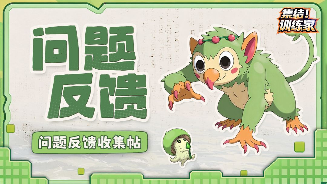 各位训练家,《集结!训练家》测试现已正式开启。游戏正处于研发调优期,因此我们亟需获得大家对《集结!训练家》的看法与建议。如果您对游戏有任何意见建议,或遇到了BUG问题,可以前往以下任一渠道寻求帮助,我们会积极解决大家的问题并统一收集提交。