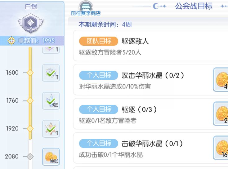 顺便说下公会战3个角色都能拿赛季箱子,我就是靠那个换的遗物神晶,再换仙尘刷的火种