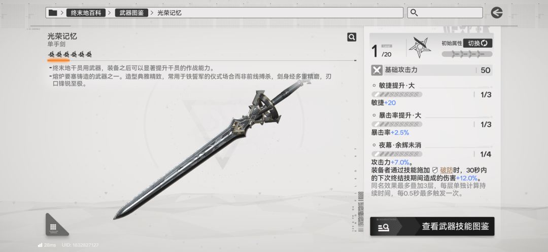 根据前面几次UP武器和月卡武器的属性,猜测UP武器狼之绯的属性是 敏捷,攻击,暴击。应该会完美适配小陈,并且1潜狼之绯可能比满潜光荣记忆属性更好。