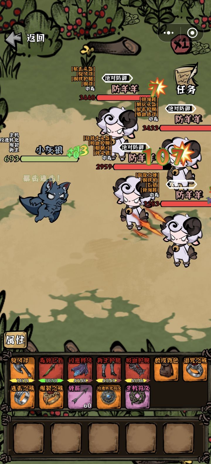 这属性打村长房间121层都打不动,暴击才60点伤害,怪的防御高到离谱,不用毒的武器打太慢了