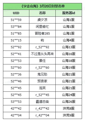山海逐荒令 | 3月20日封禁名单公示