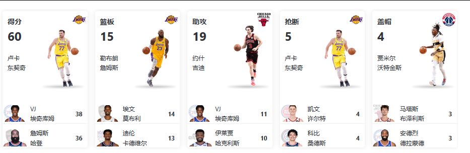 助攻:约基奇(掘金)、杰伦约翰逊(老鹰)