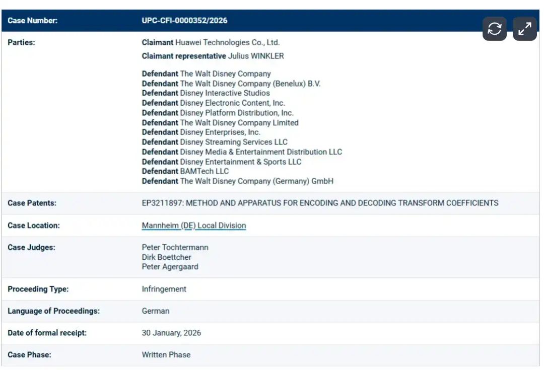 近日,欧洲统一专利法院(UPC)曼海姆分院披露重磅案讯:通讯巨头华为正式以标准必要专利(SEP)侵权为由,将迪士尼告上法庭。