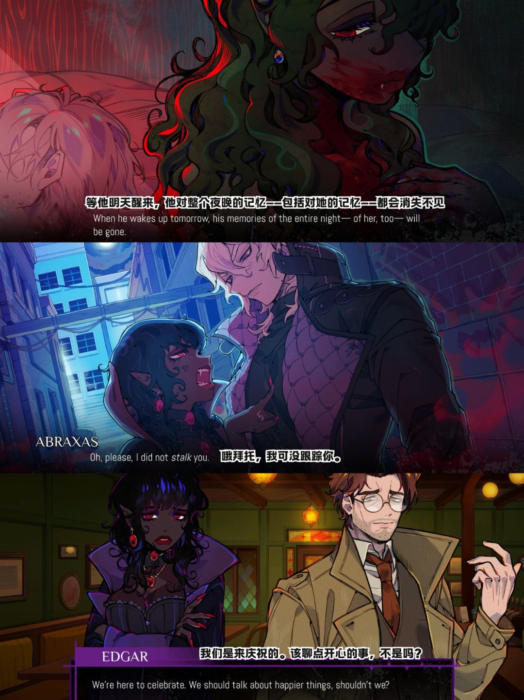 你可以扮演吸血鬼侦探Circe或者行事莽撞地狱犬警探Dante,调查危险秘密的案件,揭开两位主角过往的故事。当夜色将尽,你会选择抵抗——还是拥抱——内心的黑暗?