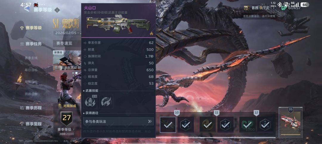 前期随便打几把,把等级提到十级不难吧?然后去拿那个火山口 商店买个暴风的体验卡不难吧?日后gp点多了再买枪就行了,运气好,箱子就开出来了。