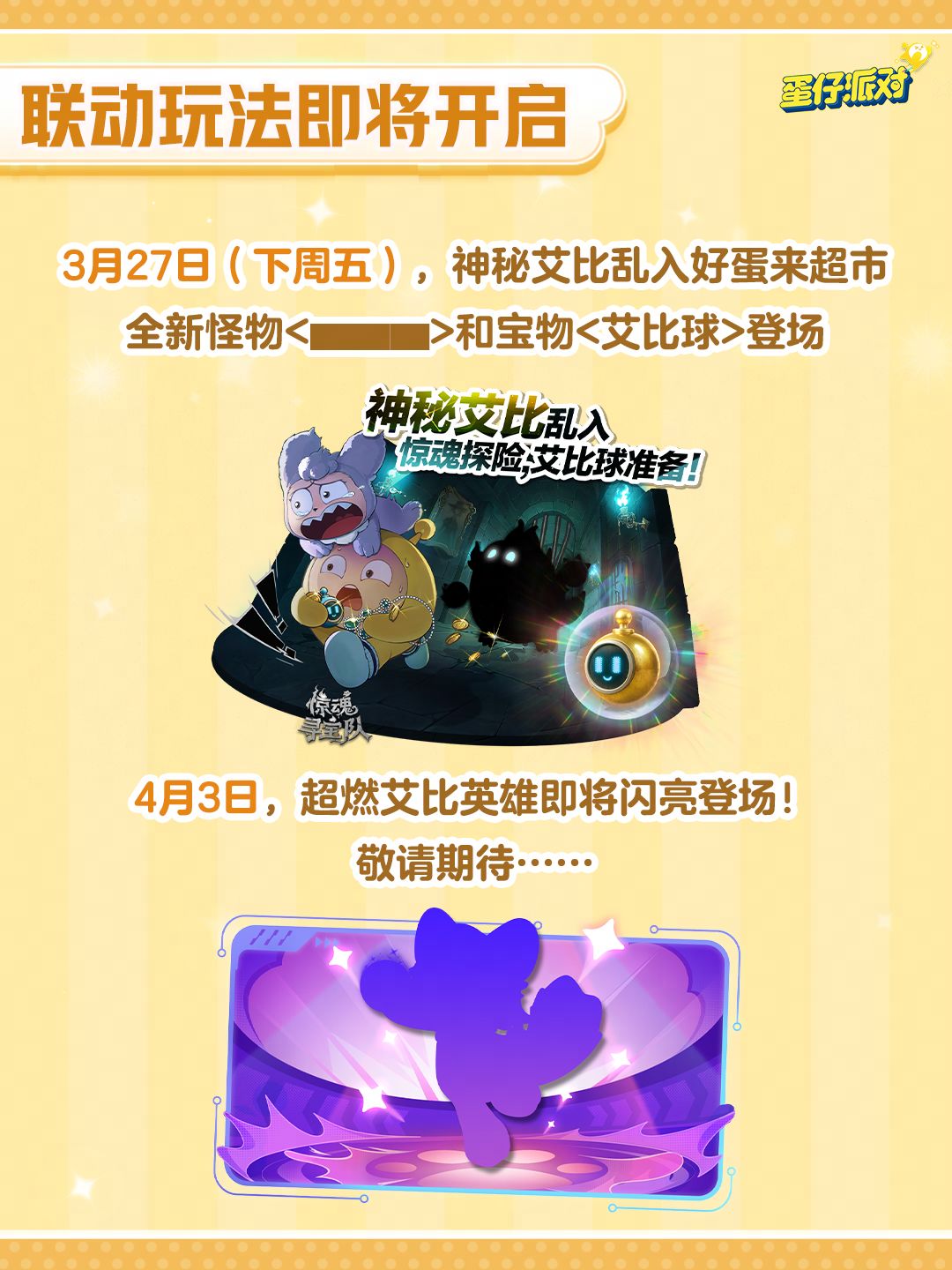 3月27日(周五),蛋仔完成活跃任务可免费获得<铛铛果>,神秘艾比<叮咚鸡>等你召唤。同日起,更有神秘艾比乱入寻宝队,全新怪物<▅ ▅ ▅>和宝物<艾比球>登场;