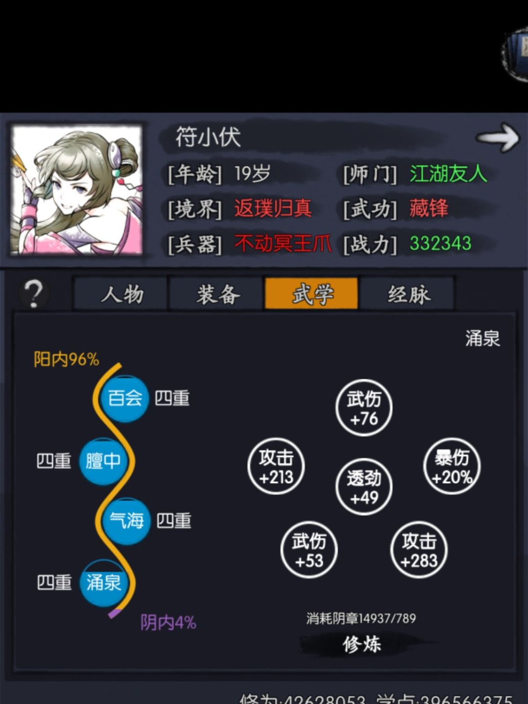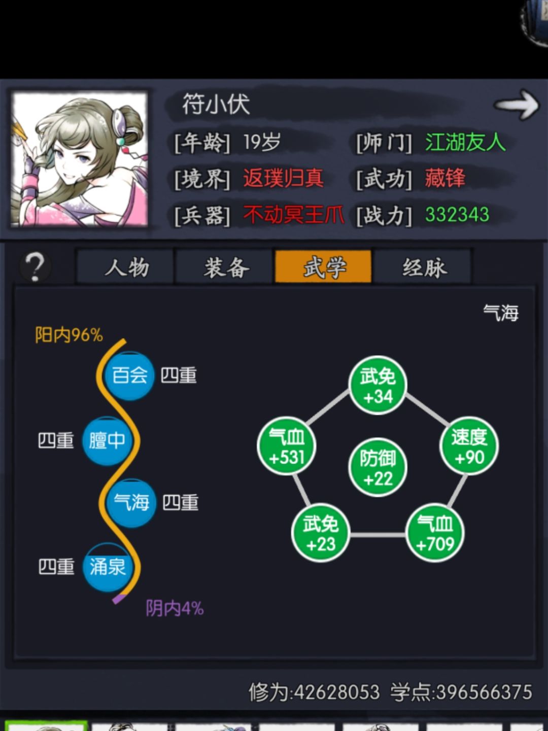 PS:因为实用性不高,本人符小符是满阳印没点阴章,融3,走阳丹的版本。内气方面随意配的,哪个肉用哪个,没啥参考价值所以不做展示了。