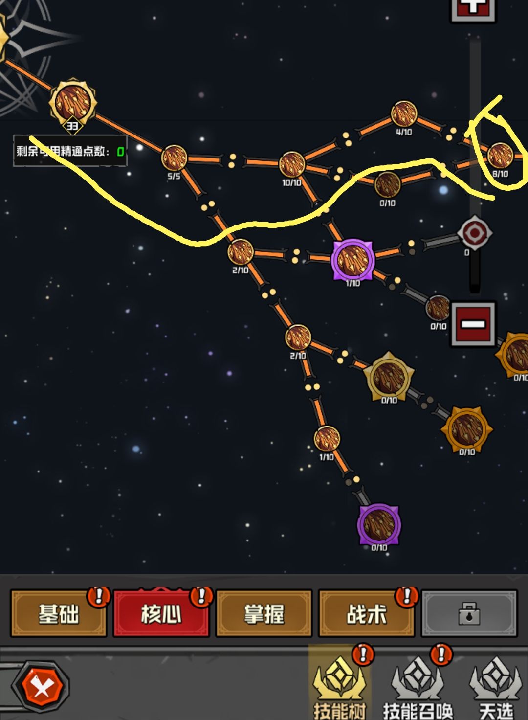 分裂箭优先左边,有余力再点3下能量,这样就能两秒攒出50能量,打出箭雨