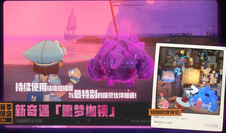 PV画面展示了多种赛季新精灵和限定精灵的身影,赛季特色奇遇噩梦枷锁与赛季通行证等特色内容逐一曝光,此外新赛季传说精灵龙息帕尔获取方式曝光,参与活动有希望免费获得