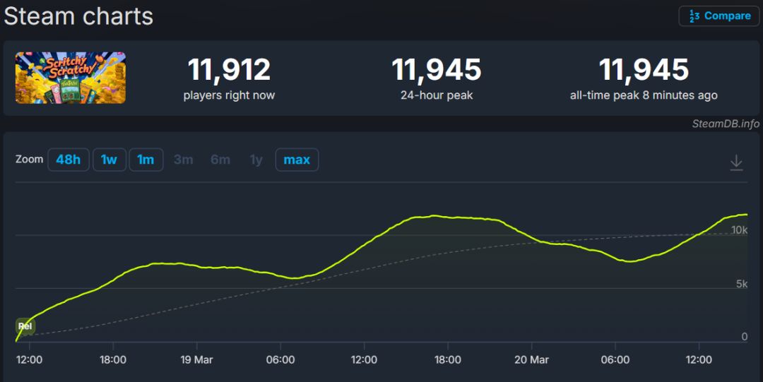 比如最近发售的《刮个爽》,这个游戏目前的在线人数峰值已经超过了1万人,这在独立游戏里完全可以称得上是现象级的热度了!该游戏支持简体中文。《刮个爽》是一款超级解压、爽感叠加的刮刮乐游戏。你在游戏中购买成叠的刮刮乐彩票,不断收集各类刮刮乐,每一种都有其独特的机制、惊喜,甚至偶尔带点“小坑”。刮开一张张彩票,找出稀有符号,扭转运势,一路冲向巨额奖励。