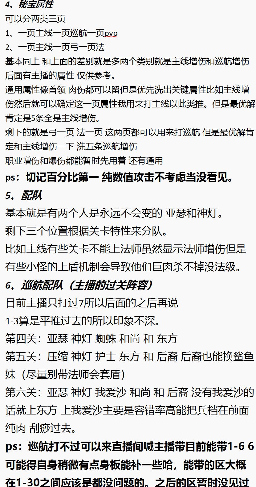 友情提示:本篇内容是根据游玩了这几天下来的感受和想法的总结。纯属个人看法。不喜勿喷,喷多了下次不写了!主播玻璃心!后面有贴图主播的配队,符文属性,秘宝属性仅供参考!
