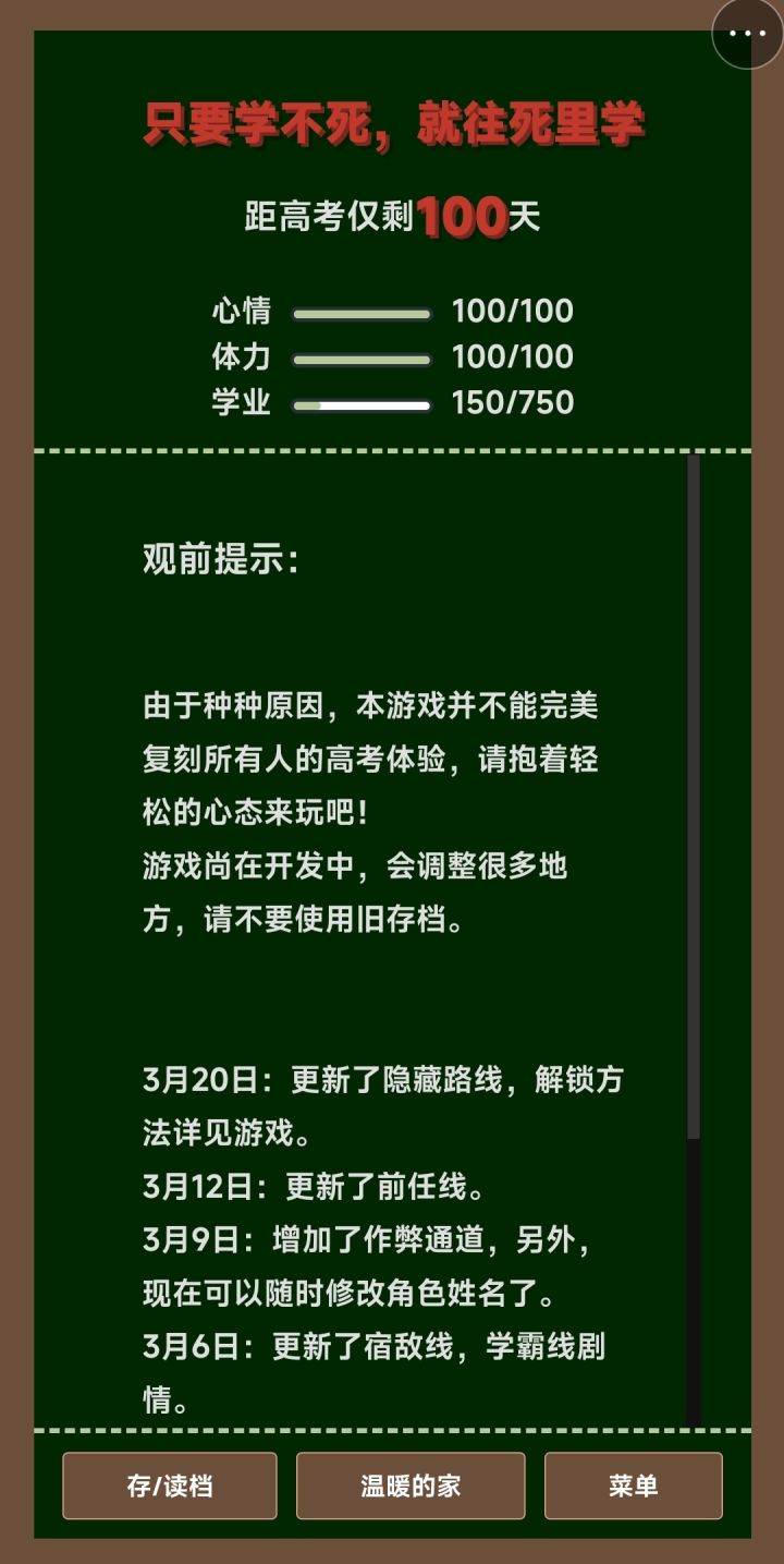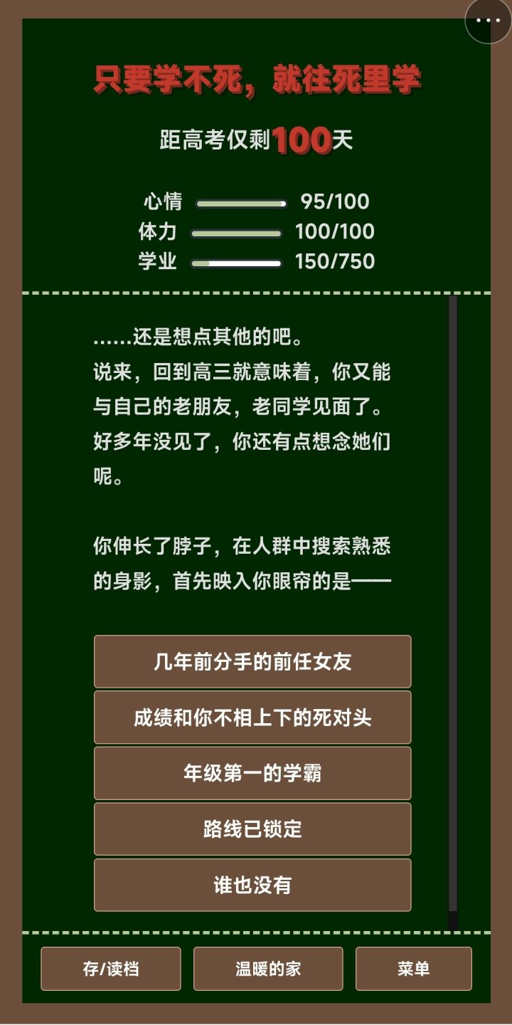 大家好啊,最近制作了一个新的小游戏,是全员女性的高考100天模拟器。