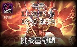 本次为大家设定的地图为【挑战墨麒麟】,并在活动期间每日20:00-22:00开启该地图额外50%掉落buff。