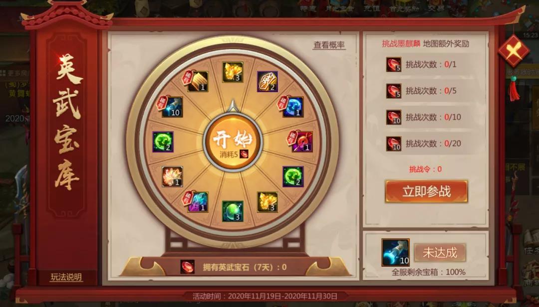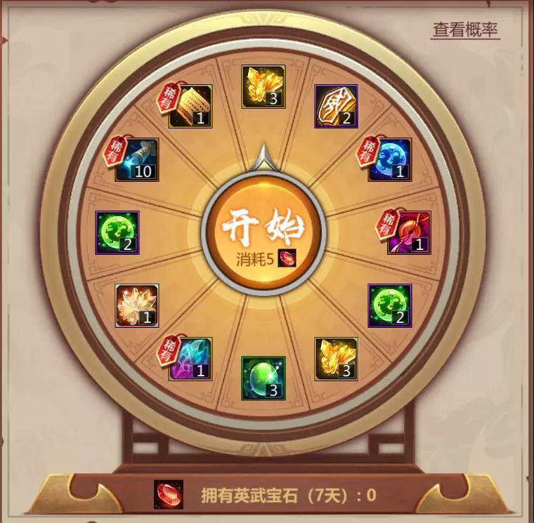 2.消耗英武宝石参与抽奖,直到奖励全部被抽完为止。