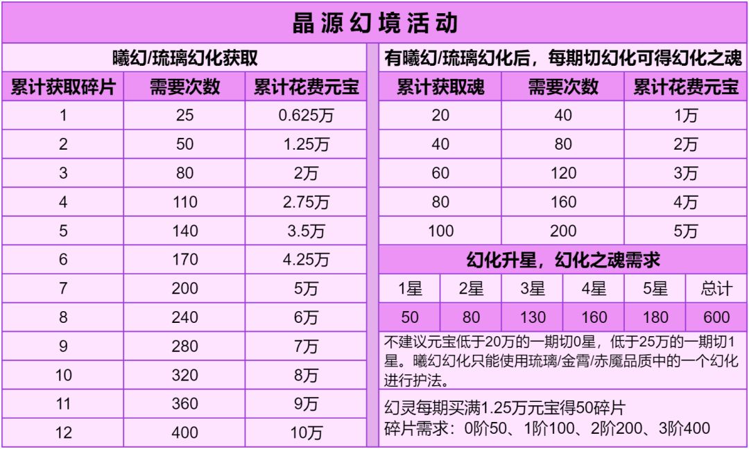 3.没有琉璃幻化碎片的,曦幻幻化5星后再分4期拿0星琉璃幻化,不用升星。