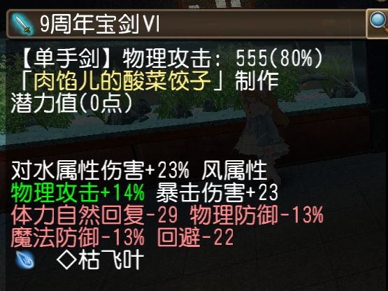 和神勇剑盾使用的单手剑一样,不过为满爆伤,锻晶我换成了枯飞叶。