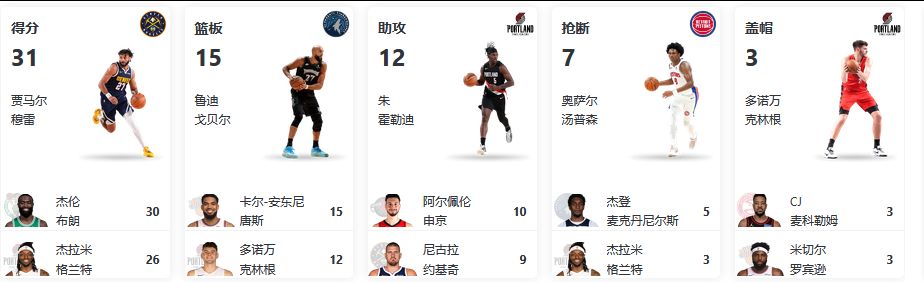 得分:东契奇(湖人)、亚历山大(雷霆)