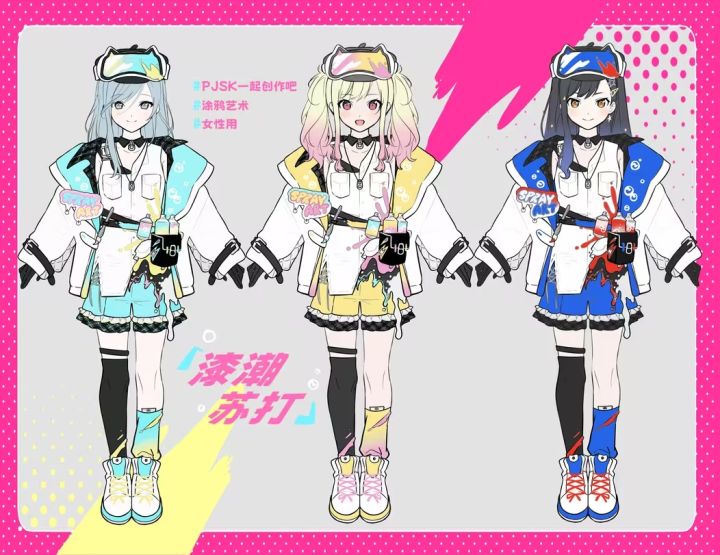 看起来是宽松外套 + 短款下装,单腿黑丝 + 涂鸦设计凸显了街头酷感。