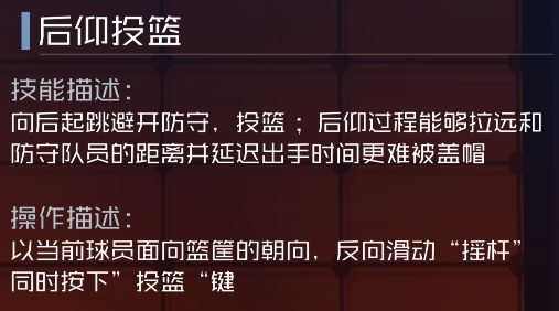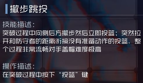 技能描述:使用任意突破技能后,短时间内降低投篮被干扰值。