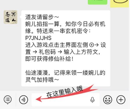 每次推送,都会在文章底部送出当天的 “修仙密令”!只需在【回复】框中输入密令,就能立即获得礼包码!进入游戏输入礼包码,即可获得修仙补给~