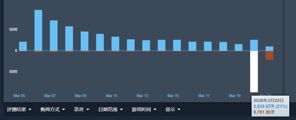 此次调整仅为Beta版实验性更新,却直接让国区游戏评价从原本的好评如潮跌至褒贬不一。据平台数据显示,游戏当前整体好评率为79%,仍处于多半好评区间,但近期新增的大量负面评价,已让社区讨论氛围陷入争议。
