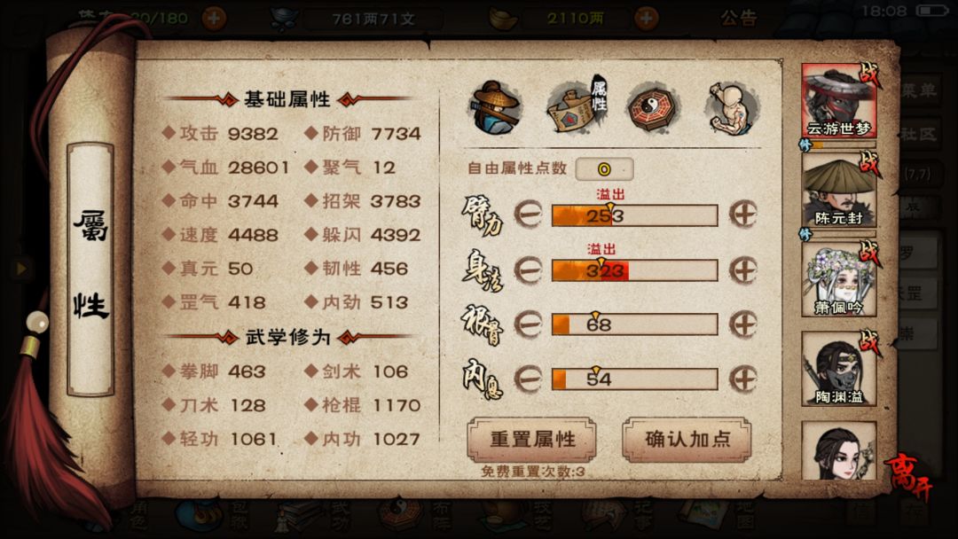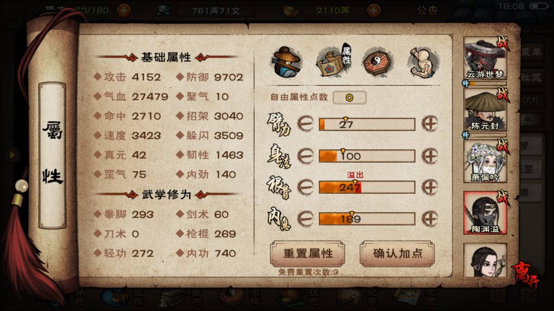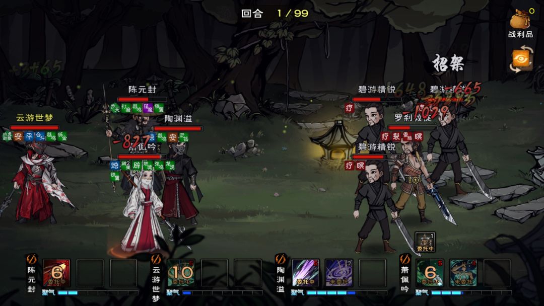 站位用的群狼折冲阵,跟常规都不太一样,甚至最后的时候状态都还很好,还能再打两回合,早知道就少上点buff减少成本了