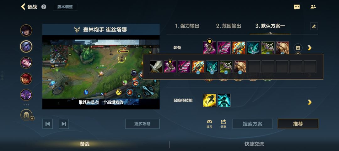 安妮:系统默认辅助装,主1技能,23技能随缘,有大点大,由于1技能比较长,随缘命中,随缘晕人,核心玩法在于,大招控制,有熊可以抗大小龙,可以抗塔推水晶,相当于我方5个半人打对面5个人,优势在我,自己手速快点,按完大招熊出没控制,直接一套123技能晕人,再反手等一会按多一次大招击飞对面,理论上打满输出,可以晕对面很久,也是放完技能就跑,后期大招cd很短,可以放心一直用,用来抗龙,推塔,团战晕人