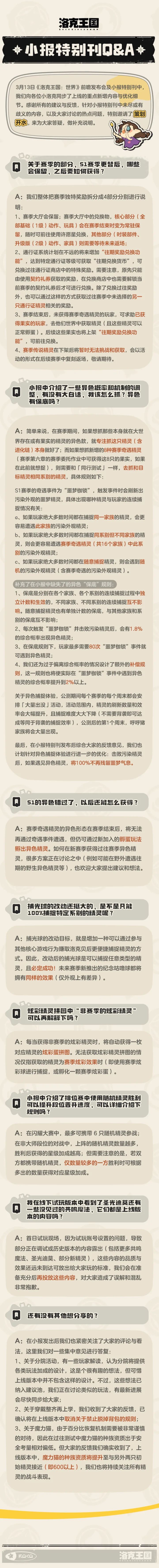 《洛克王国:世界》发布小报特别刊QA 赛季机制明确