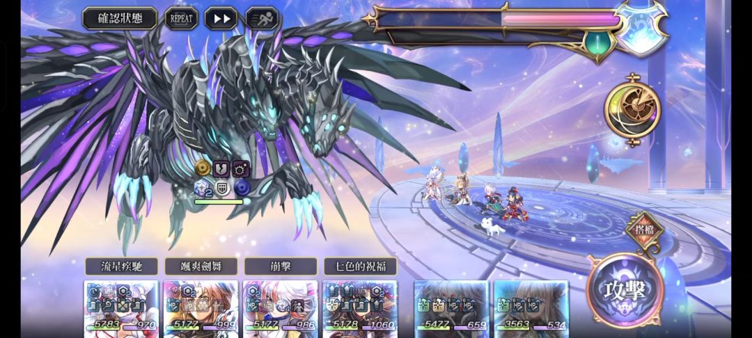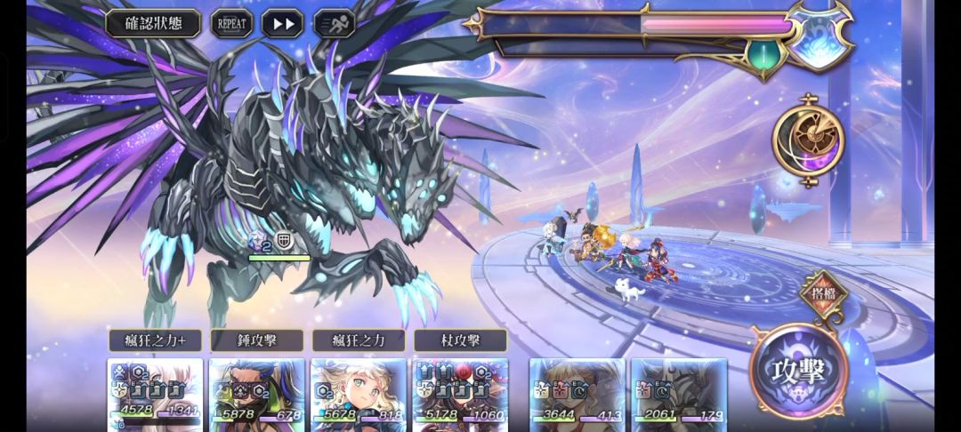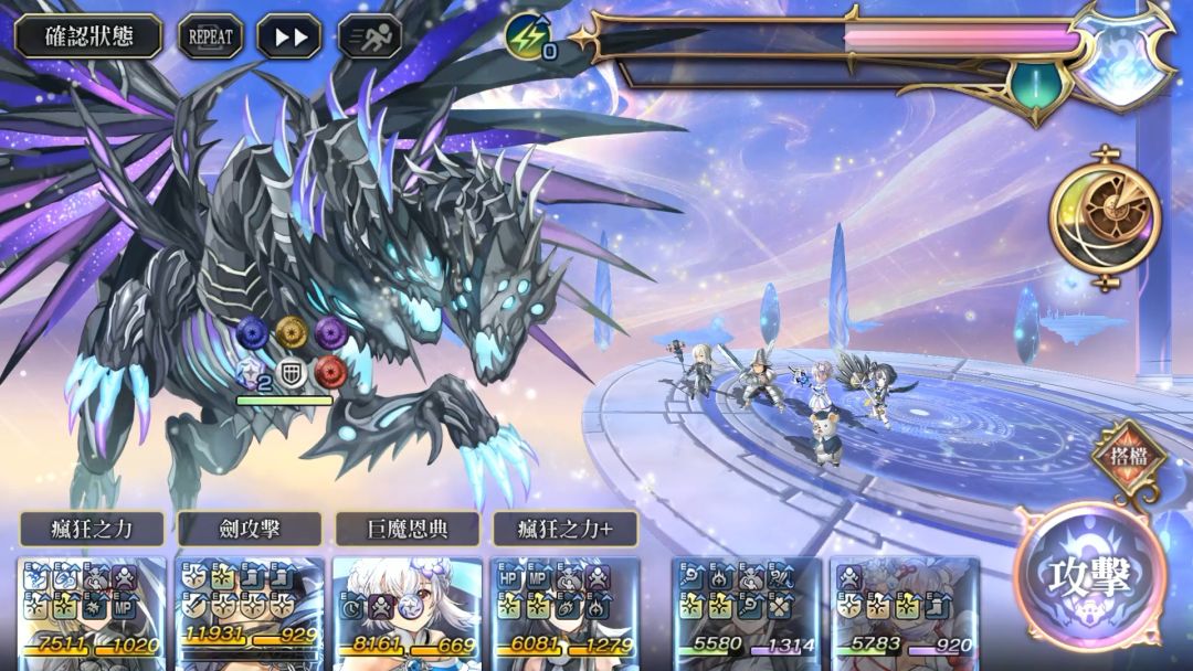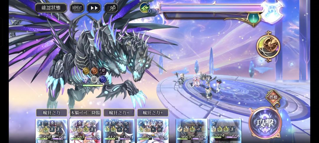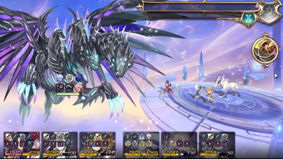 3T:晶魔全体力智dbuff(中/99回合)+随机单体2次阴魔魔耐&全属DOWN(中/99回合)+恢复10%最大HP + 力智速+10% + 魔法暴击率提升10%(小/99回合/累计10次)