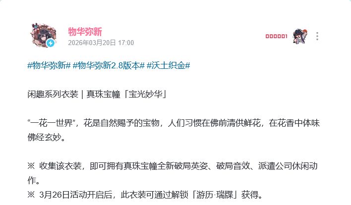 文物作为特色的战棋手机游戏《物华弥新》近日爆料了真珠宝幢新皮肤,引发玩家讨论。