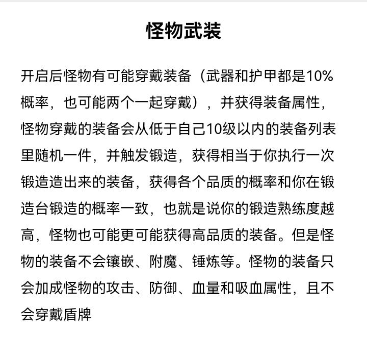 1、怪物会优先穿戴低于自身10级及以内的神话护甲,若此范围内没有神话护甲,则穿戴普通护甲