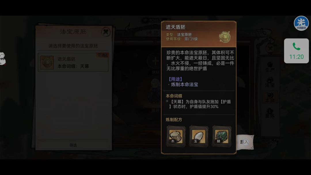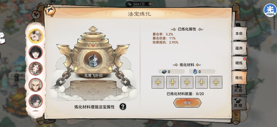 4. 法宝的主、辅材料的等阶越高基础炼化属性、五行威力越高。