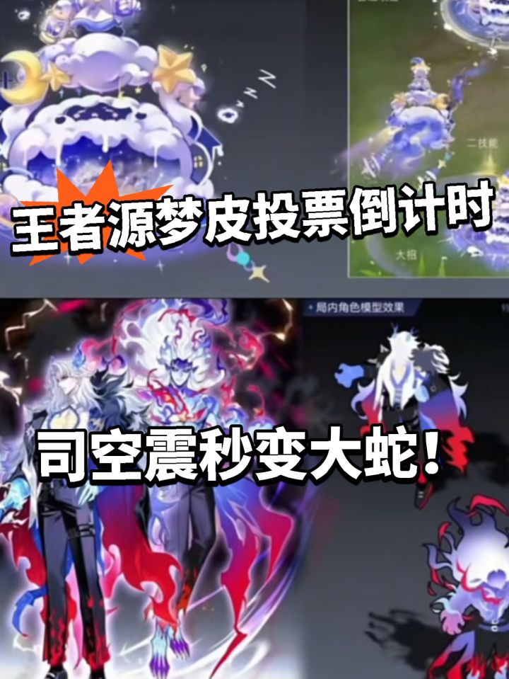 司空震和太乙真人的源梦新皮肤投票直接杀疯了。