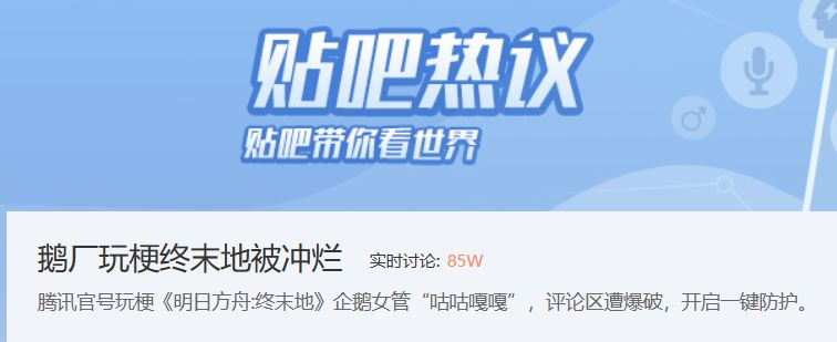 腾讯官方账号因玩梗《明日方舟:终末地》中企鹅女管的“咕咕嘎嘎”引发大量玩家不满,评论区被迅速爆破,相关话题登上贴吧热搜,官号随后开启一键防护。