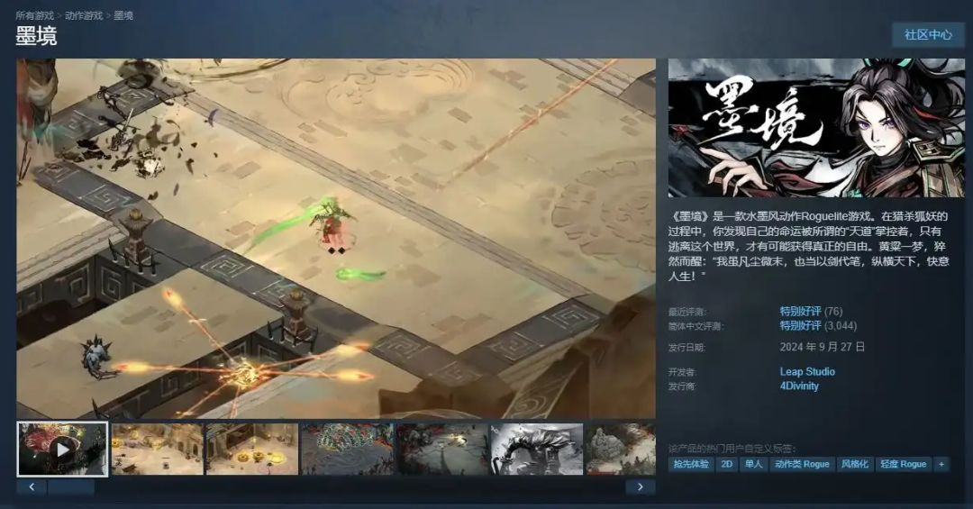 为什么说它是“更适合中国宝宝体质的哈迪斯”《墨境》在Steam上长期保持91%以上的特别好评。很多玩家第一次被吸引,是因为它独特的水墨画风——竹林、佛窟、天宫、园林等场景在2.5D视角下层次分明、空间感丰富,随手一帧都能当壁纸。但真正让人留下的,是扎实耐玩的动作肉鸽玩法。