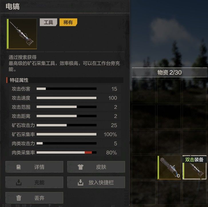 顶级工具:电镐/电锯是终极答案,提供100%木头/矿石采集效率