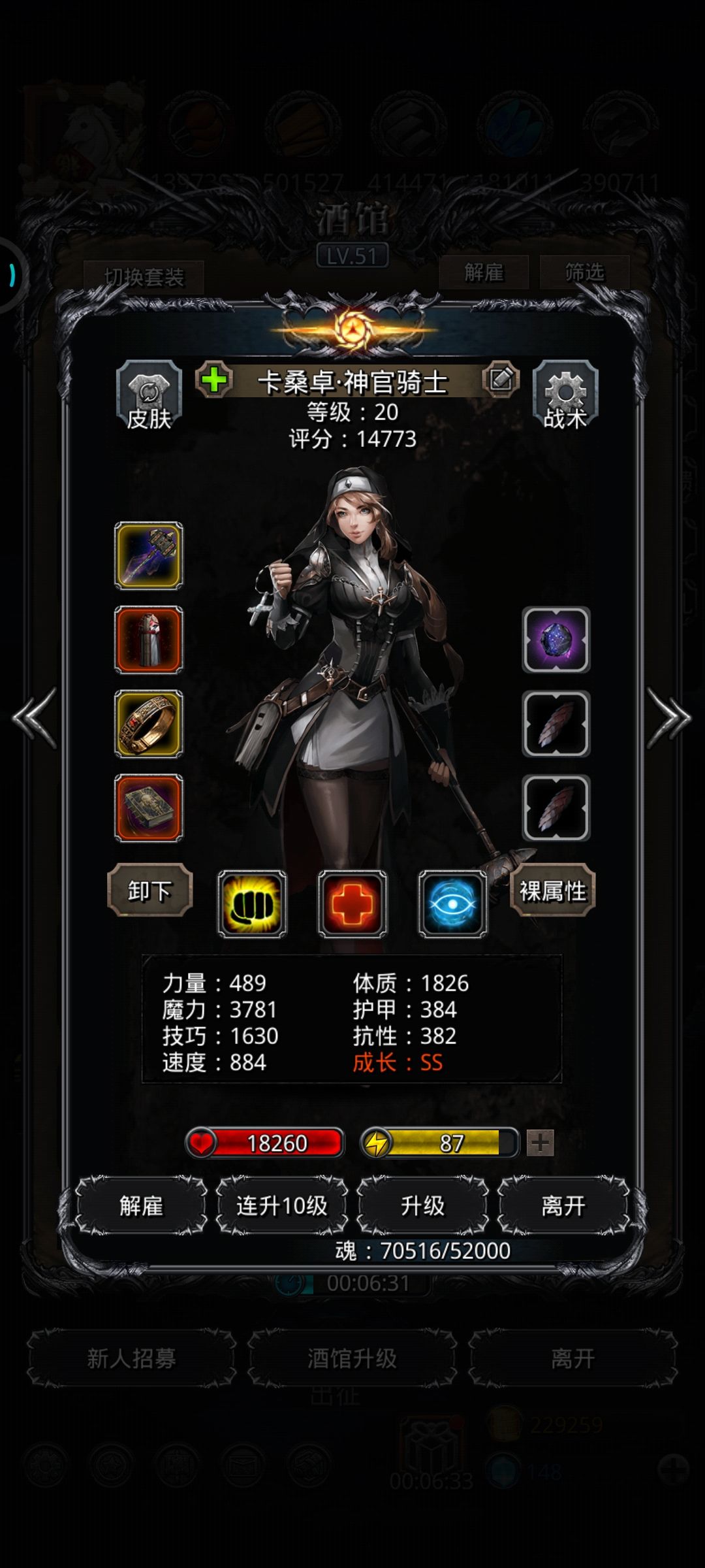 配装方面死灵没有的话可以换献祭冠,抗争心也可以换其他加生存的饰品,至于魔石,神官的是14副本监牢二层给的白嫖石头,其他三个无所谓。