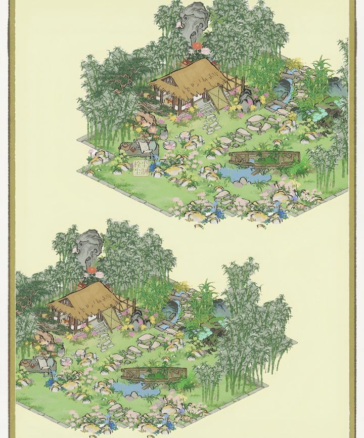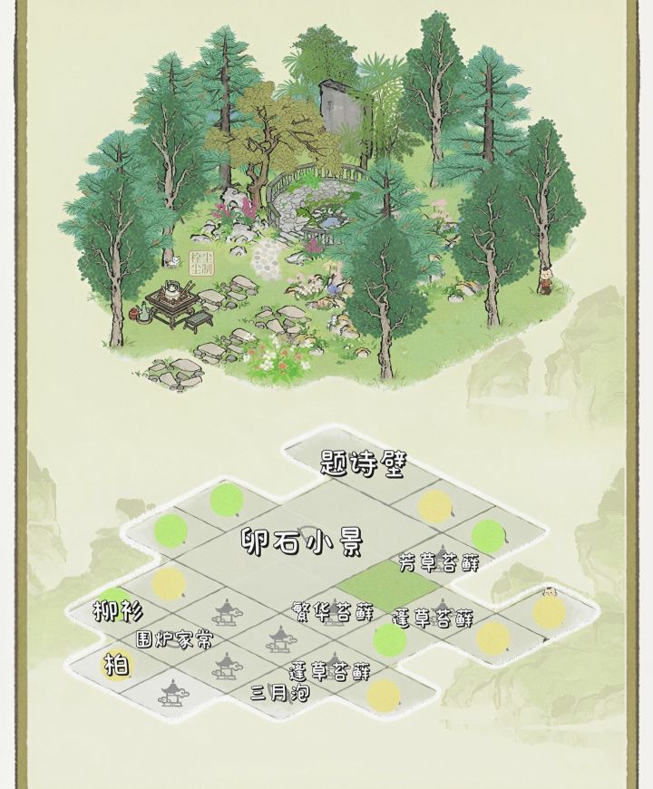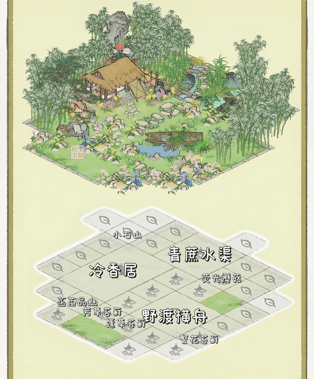 🏠:苔藓系列、竹衫柏、卵石小景、冷香居、青蔗水渠、野渡横舟