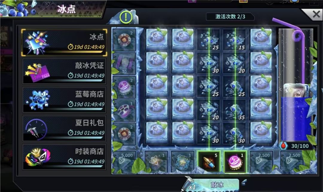 2.4.当敲开冰块5个连成1条线时可以获取对应线上的道具,但只可激活3次(敲开冰块时无论激活几条线均算激活1次),激活完后必须刷新才可继续敲冰