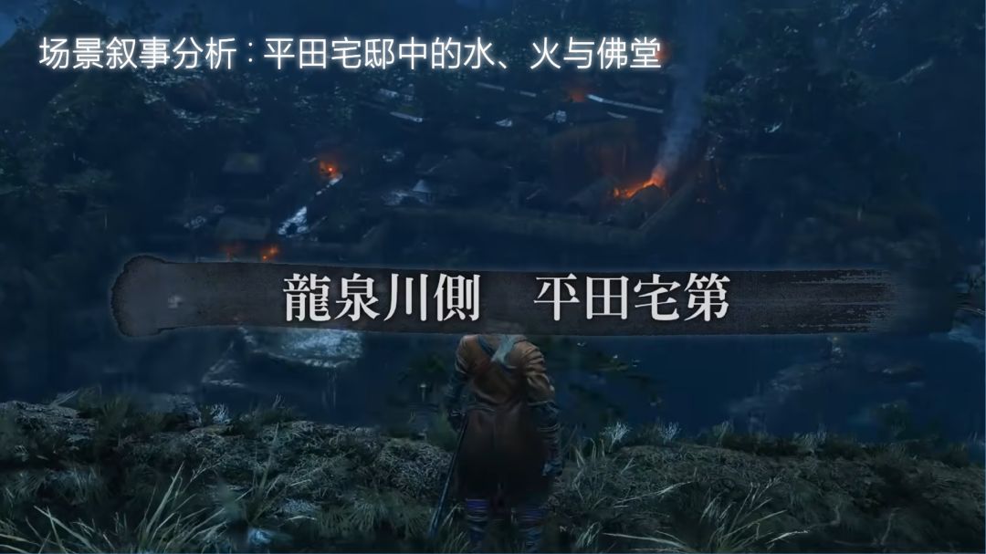平田宅邸关卡展现了《只狼》在场景设计的递进逻辑,通过对水体规模、火焰覆盖、空间层级与敌人职责的精确控制,构建递进的情绪曲线。这种推进并非单纯的前进,而是对情绪的层层施压与释放:从远观大火的克制,到靠近火焰的紧张,再到进入火海后失控,玩家情绪被逐步推向极限。火焰的延续与佛像倒塌,共同完成了“善与恶”冲突的终极呈现。而玩家在这一系统中产生的情感波动,正是《只狼》叙事哲学的实践结果:唯有主动直面深层恐惧与欲望,才能完成真正的超越。