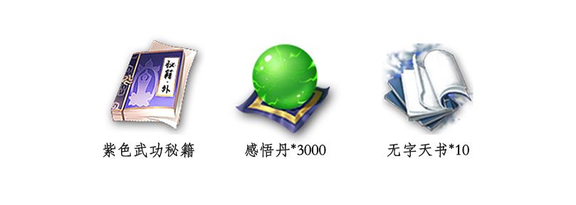 预约1W 随机一本紫色武功秘籍,感悟丹*3000,无字天书*10