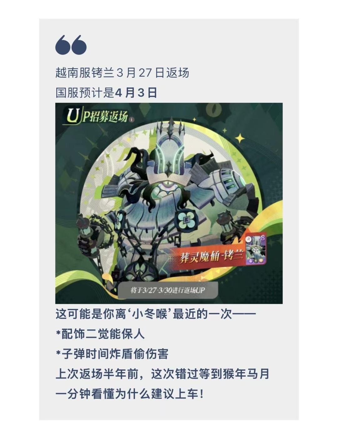 剑与远征 启程 铸兰返场