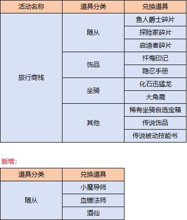 1、后续兑换内容将返场往期活动随从、饰品、坐骑或背饰等,以后续每月实际旅行商栈预告为准;