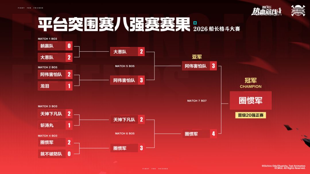 S16 平台突围赛八强赛果重磅出炉!恭喜队伍【圈惯军】的两位船长⌈习惯⌋与⌈阿圈⌋强势晋级,成功跻身船长格斗大赛 20 强,巅峰之路再进一步!
