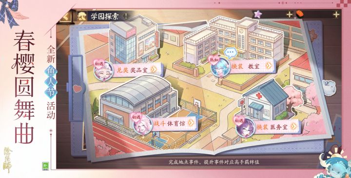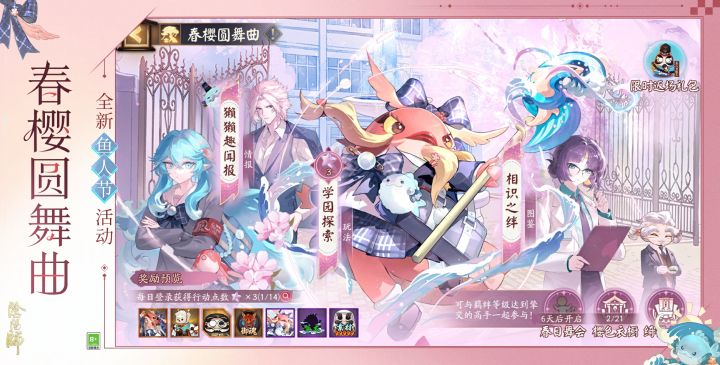 ※参与各类玩法可完成活动任务,推进「入学赠礼」奖励进度,免费抱走小鹿男呱新皮肤「呱行山海」、限定插画「春樱圆舞曲」等奖励。消耗39魂玉购买「绮遇赠礼」还可额外解锁海坊主新皮肤「汐樱晴语」(具备全新语音)等更多奖励!