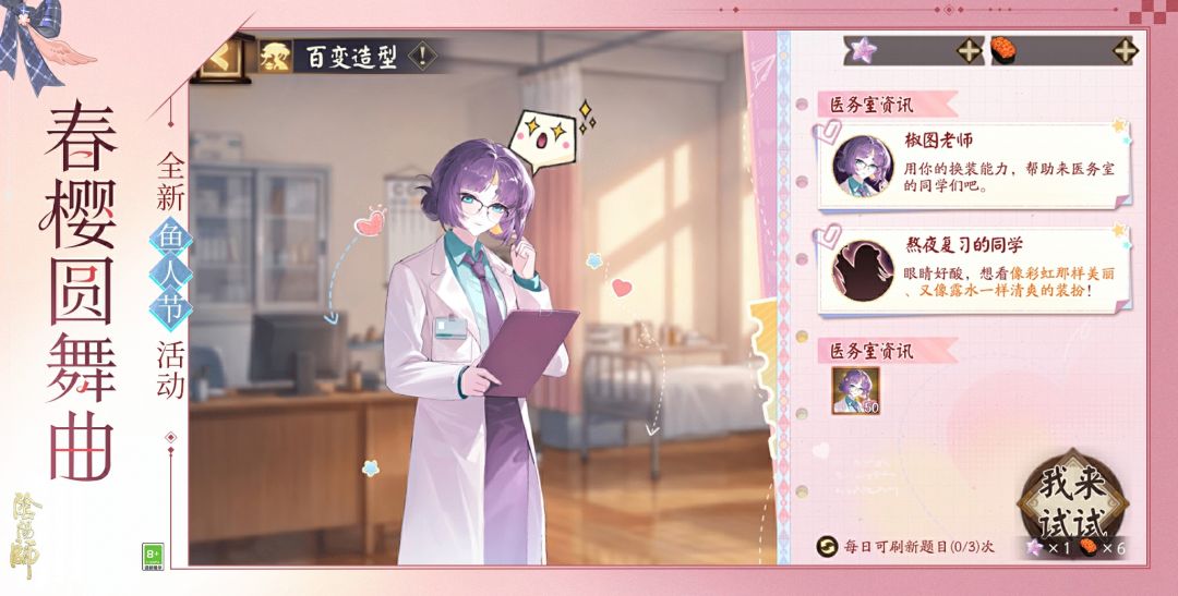 ※3月25日维护后-4月7日23:59,大人每日可获得3个「能量星」,消耗「能量星」可进行学园探索,触发与各位高手的玩法事件,提升与各位高手的羁绊等级,解锁特殊奖励!